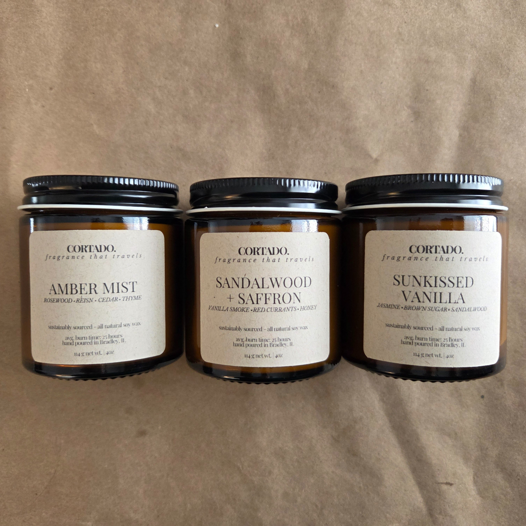 Crafted with intention, these auburn glass vessel candles bring the glowing essence of artisanal craftsmanship into your home, inviting warmth into every space.